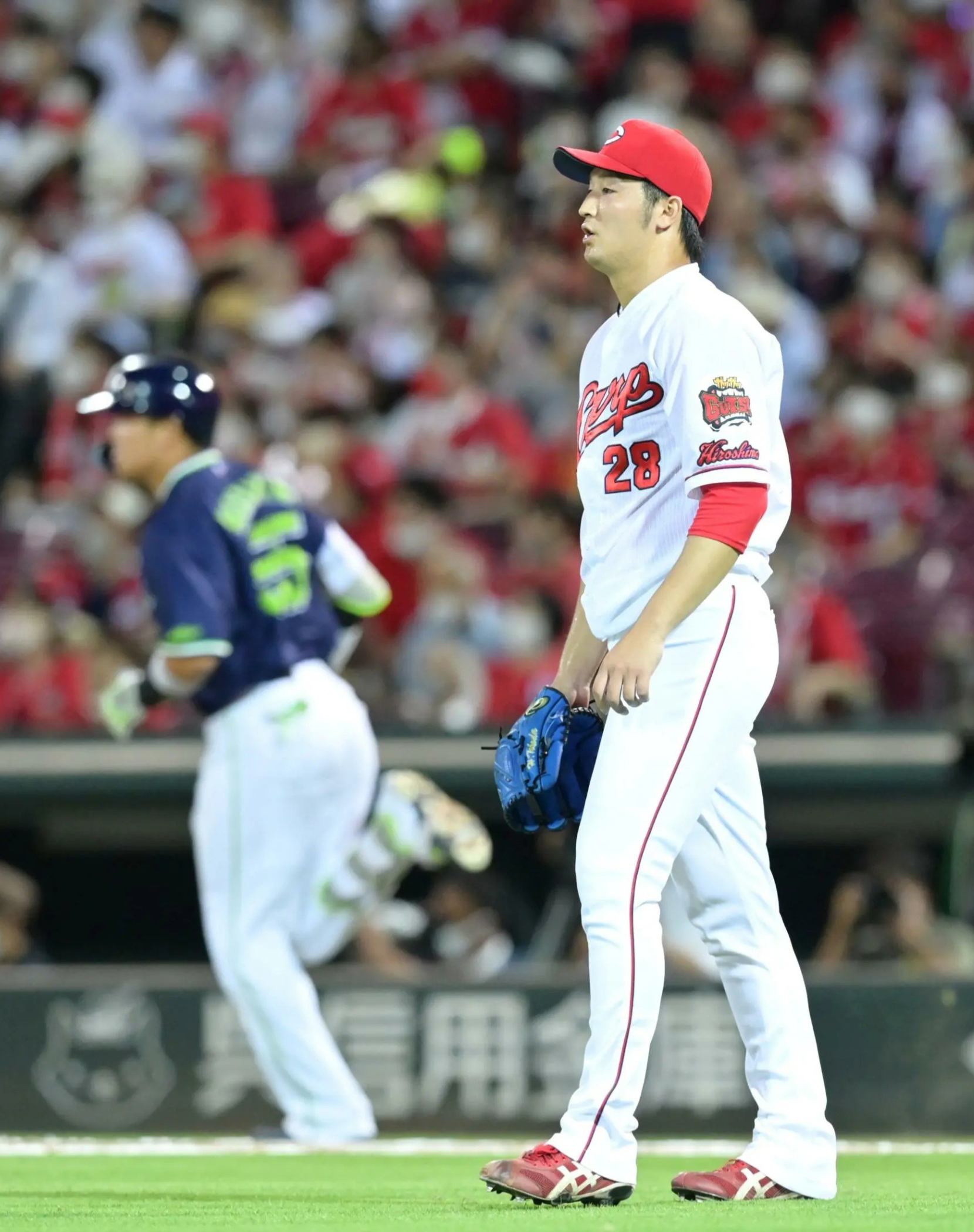 3点リードの六回に落とし穴が待っていた。先発の床田は五回まで無失点、内野安打1本に抑えていた。だが、六回に山田に右前適時打を許して2点差に。なおも1死一、三塁から4番・村上に初球を捉えられ、左中間への逆転3ランを許した。
