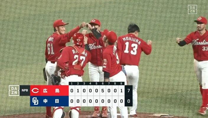 【中日対広島13回戦】広島が7-0で中日に快勝!森下が7回無失点で6勝目!マクブルームと小園に一発!中日は今季16度目の零封負け