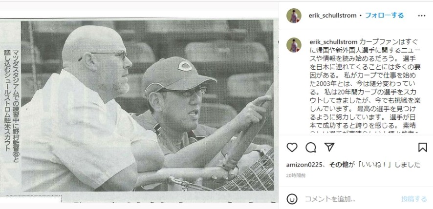 「カープファンはすぐに帰国や新外国人選手に関するニュースや情報を読み始めるだろう。 選手を日本に連れてくることには多くの要因がある。 私がカープで仕事を始めた2003年とは、今は随分変わっている。 私は20年間カープの選手をスカウトしてきましたが、今でも挑戦を楽しんでいます。」
