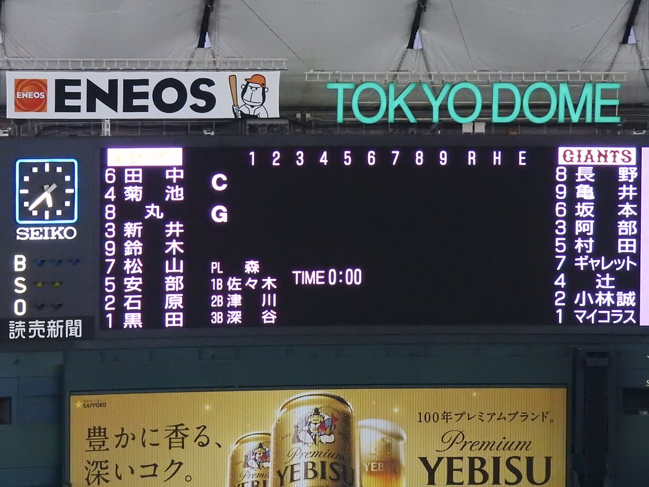 東京ドームの巨人対広島戦を振り返るで