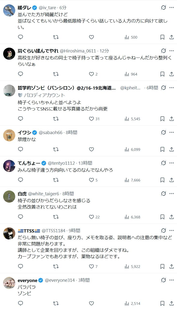 【悲報】広島カープ、イスの並べ方が雑過ぎる…