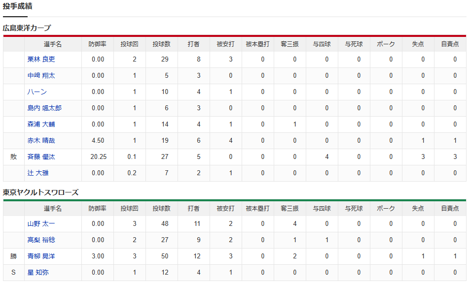 カープ平川&泰2安打!勝田3塁打!奨成1打点!先発栗林2回0封!中崎-ハーン-島内-森浦0封!斉藤優0.1回4四球乱調KO【広島1-4ヤクルト/オープン戦/試合結果】