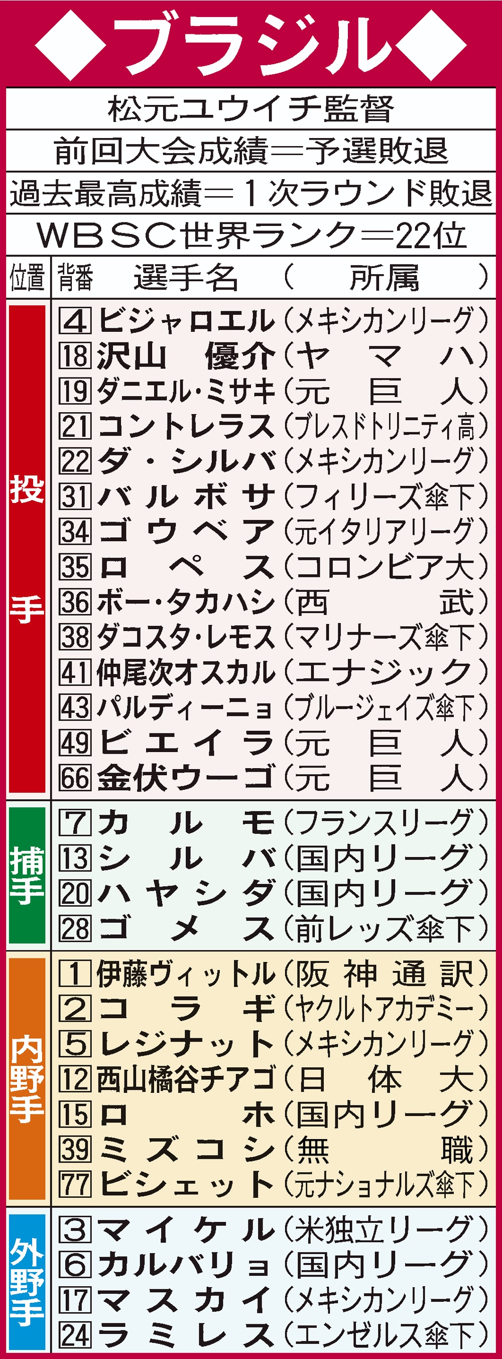 元カープ・オスカルがWBCブラジル代表!阪神通訳&無職ミズコシらと優勝狙う