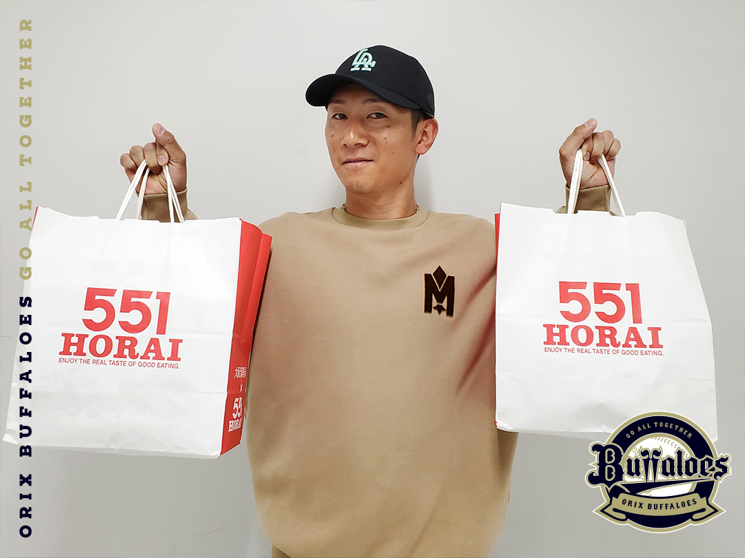 オリックスの球団公式X(旧ツイッター)が4日、「#西川龍馬」「#カープさんへ差し入れ」「#さすがのミナトクダンシ」などと投稿した。添付された写真には、大阪名物「551HORAI」の豚まんの紙袋を持った西川が写っていた。