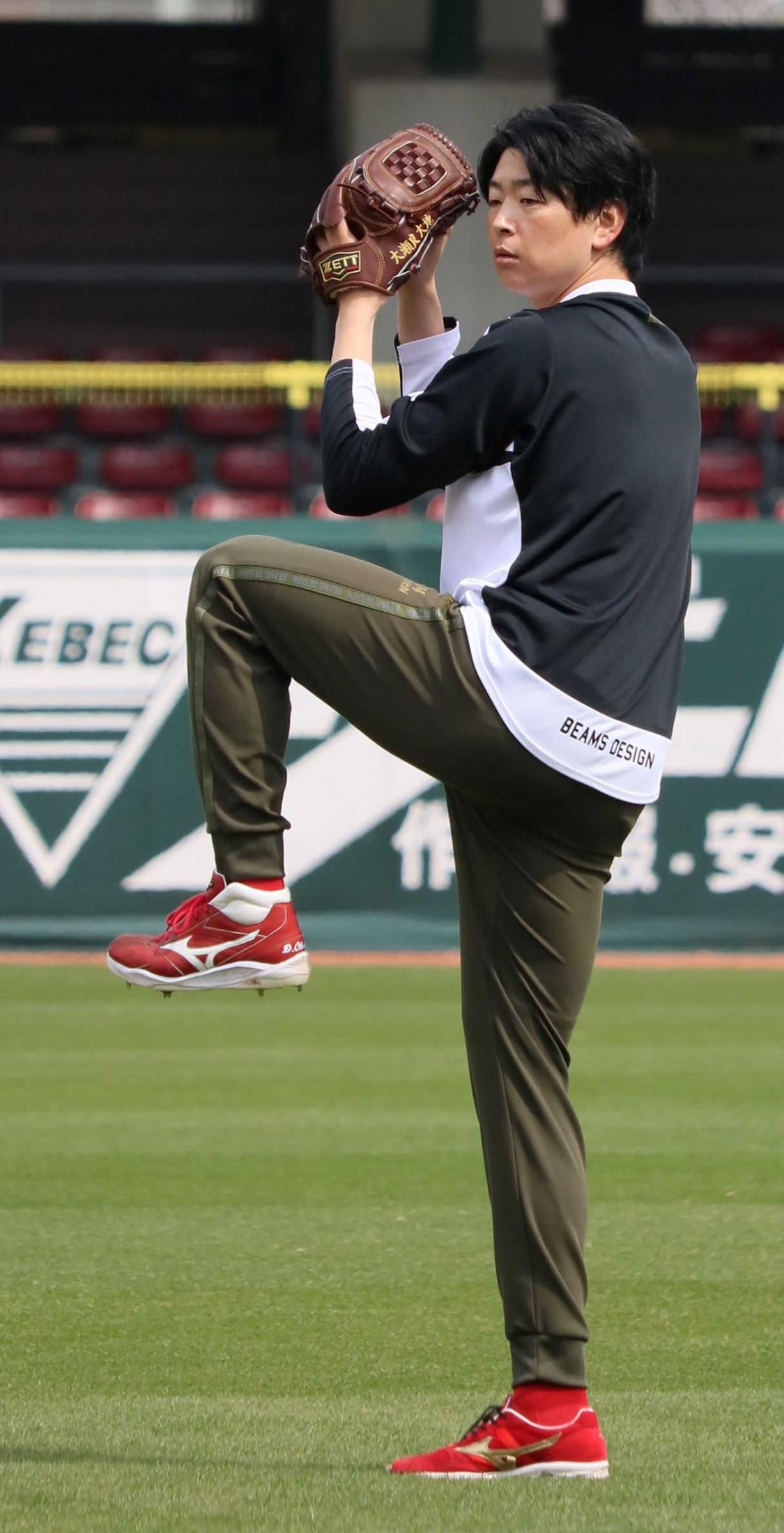 キャッチボールでは60~70メートルの距離を投げた。「ちょっと肩は動かしておきたかった。投げる分に関しては、全く問題ないので」。右足でしっかりと立ち、投球は力強い弧を描いた。
